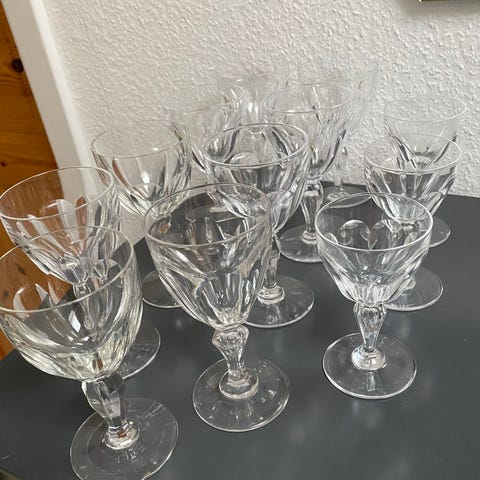 4 stk. Perfekt stand. Krystalglas med luftfyldt boble i stilk. Fremstillet på licens fra det belgiske glasværk Val Saint Lambert 1917-1930 på Holmegård Glasværk