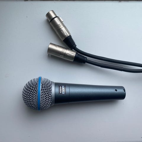 Klassisk mikrofon der vel nærmere behøver nærmere introduktion. Er ud over en god vokal mikrofon blevet en standard inden for podcast og radio. Har et lavt output, så den kræver en rimelig preamp. Bordstativ og kabel medfølger. Små brugsspor men virker perfekt.