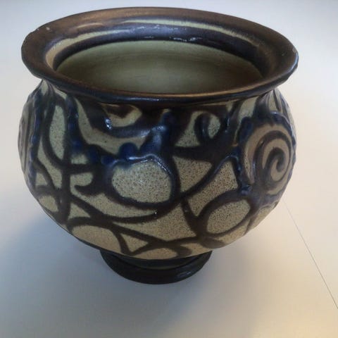 Herman Kähler HAK Vase Brun/blå dekoration på lysebrun baggrund. Kohorn glasur,