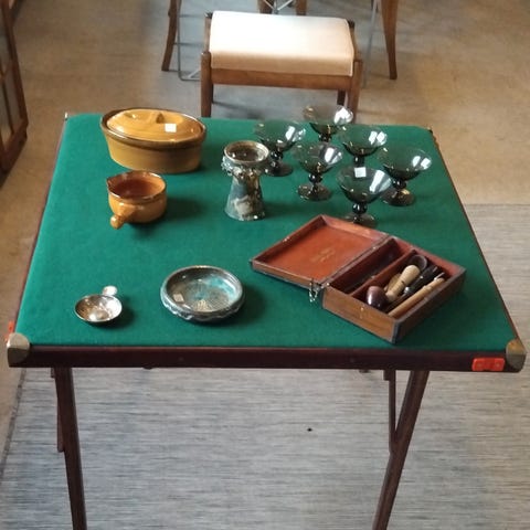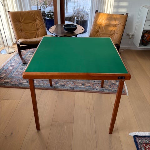 med læderlign. Bordplade super fint