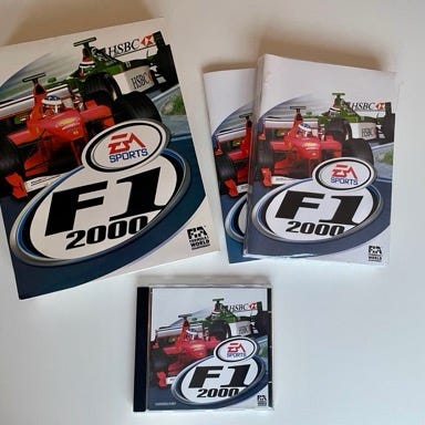 Formel 1 manager løbsimulation med detaljerede baner og biler. Indeholder spil, manual og original emballage.