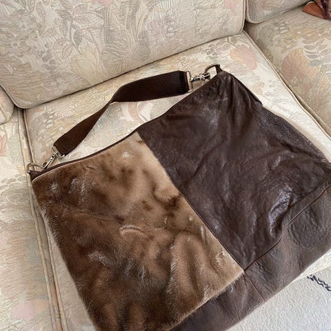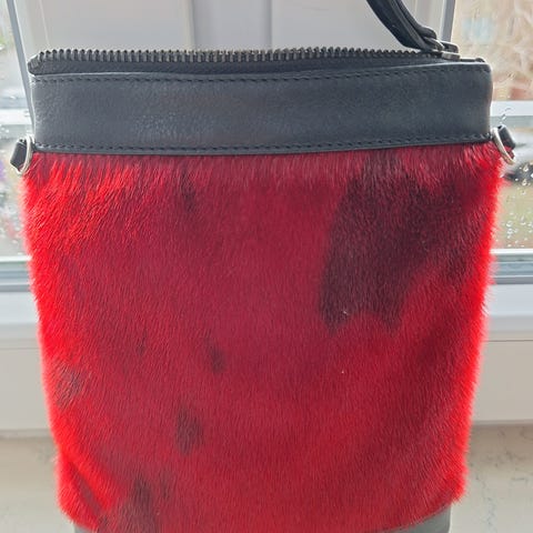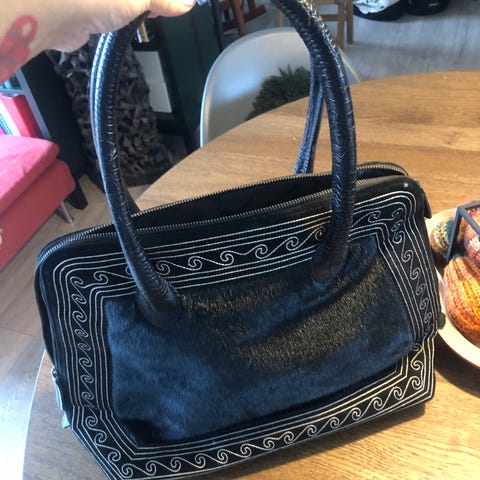 Super lækker great Greenland skuldertaske i grå sælskind med pink kant. Fremstår som næsten ny