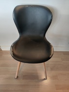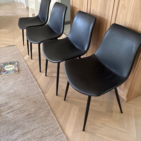 Super komfortable spisebordsstole med synlige brugsspor.