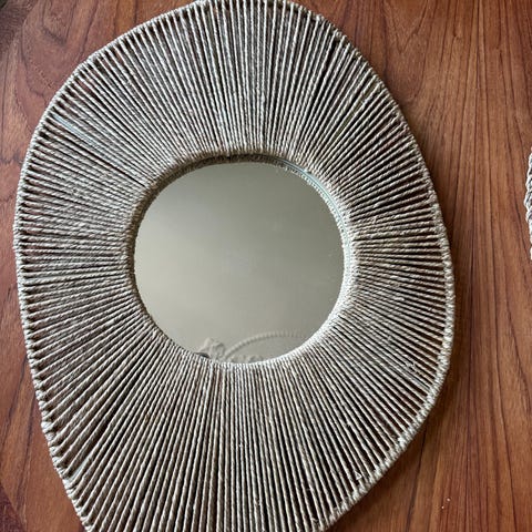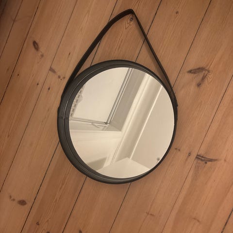 H&M Home rundt spejl med en marmor-fod. Spejlet har en enkel og moderne design, der gør det velegnet til forskellige rum i hjemmet.