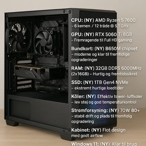🖥️ PC’en er ny og samlet med kvalitetsdele – klar til brug med Windows 11.