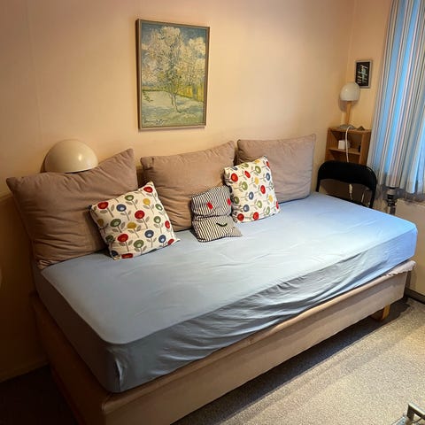 Briks/sovesofa. Madras er 85 cm bred. Er stort set ubrugt. Har stået på et kontor.