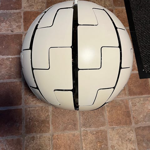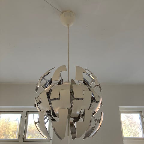 Folde ud lampe Ø35 - sammenfoldet er den hvid metal- slået ud sølv og rødlig