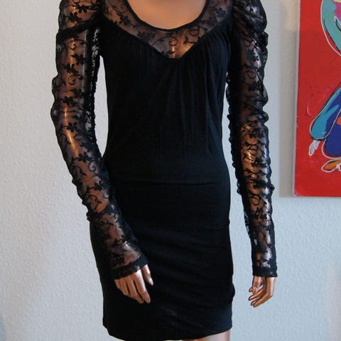 Vila Fest/cocktail kjole i sort farve, størrelse L. Kjolen har et blondemønster og lange ærmer, designet til kvinder.