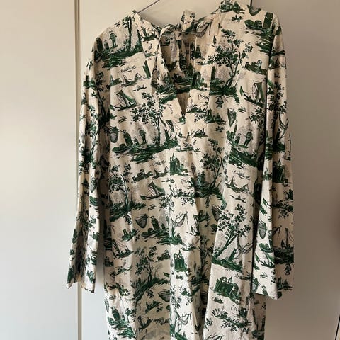 Baum und Pferdgarten kvinde kjole i størrelse L. Kjolen er lyserød med et mønster af blade i en lysere nuance. Materialet fremstår let og velegnet til kvinder.