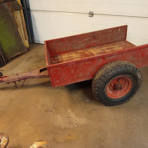 Transportvogn til gocart med metalramme og fire hjul med gummidæk til at transportere eller reparere en gocart Vognen har en rektangulær platform til transport af varer. (Værktøj mm) Håndtag i metal til skub eller træk