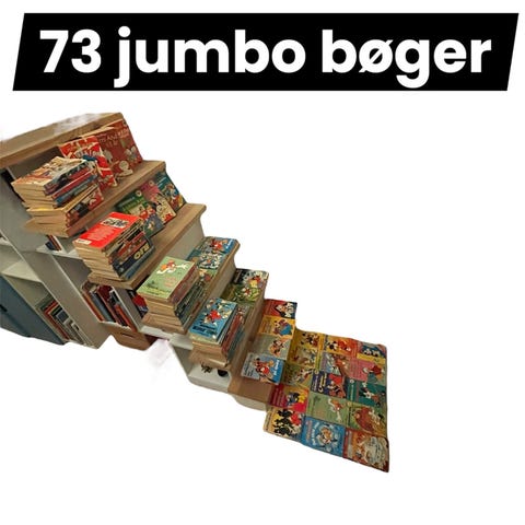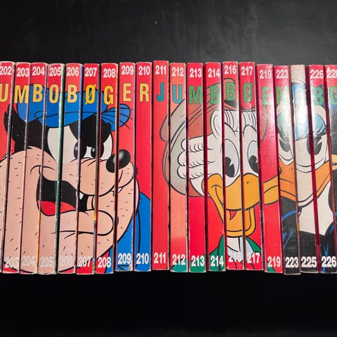 242 forskellige jumbobøger til salg - sælges kun samlet. Zoom ind på billeder for at se numrene. En del er i Brugt, men god stand - andre er mere slidt.