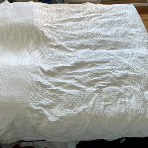 Ingen pletter eller skavanker. Blåt betræk på kirsebær meder.