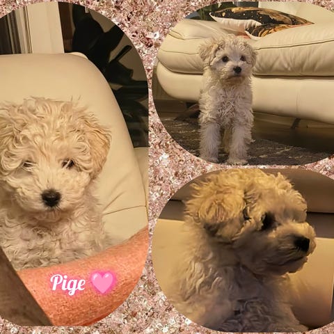 Hun er sød men da vi skal flytte, hun er renlig og er sød til at går i snor og elsker opmærksomhed