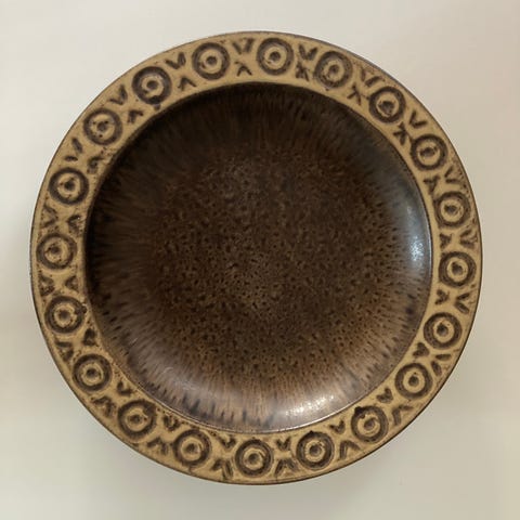 Fint vintage fad fra Bo Fajans fra 1960'erne (Sverige). Motivet er snebær på grålig baggrund.