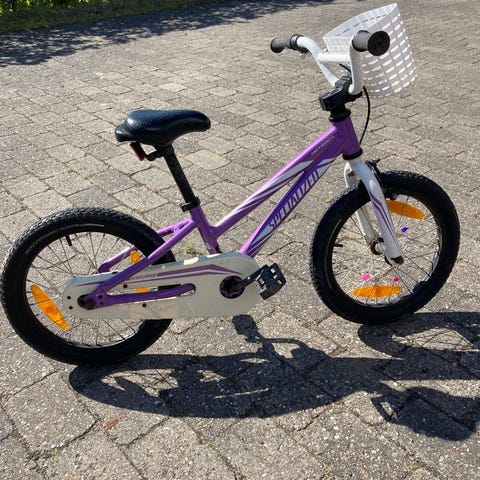 Specialized Jett 16 børnecykel med 16 tommer hjul. Cyklen har en lilla metallic ramme og er udstyret med reflekser på hjulene for øget synlighed. Den har en komfortabel saddel og håndbremser. Cyklen er designet til børn og egner sig til daglig brug og fritidsaktiviteter. Meget fin stand og nul rust. Leveres ny serviceret.