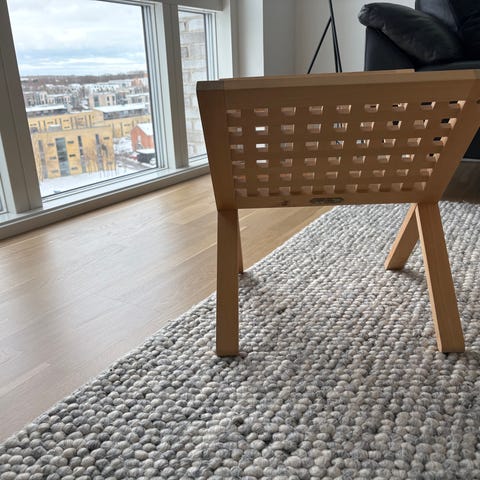Trip Trap magasin holder i teaktræ, 41x41 cm, højde 45 cm. Velholdt og fra ikke-ryger hjem. Kan medtages mod Aarhus.
