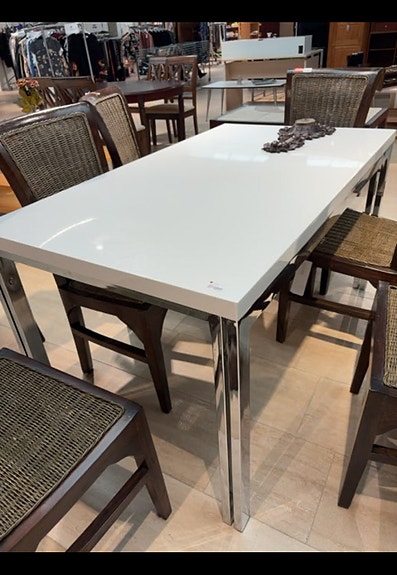 Skrivebordet har en glasplade med metalstel. Det er minimalistisk og modernistisk i designet.,Afhentes i:,Røde Kors Kolding (621),Bemærk at mail, chat og beskeder ikke besvares, og varen skal købes på knappen "Gå til varen"