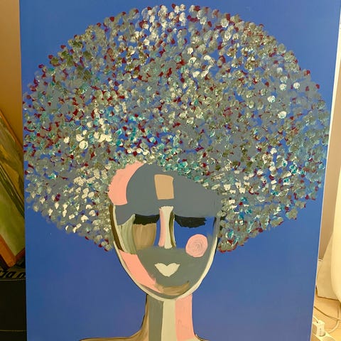 Smukt og roligt maleri med motiv af frugter i varme farvenuancer.