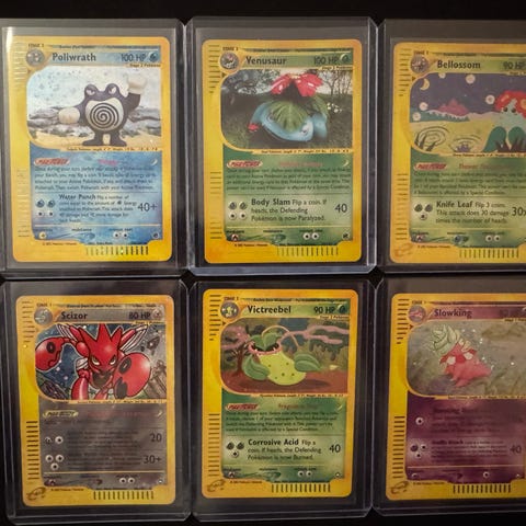 Sælger en samling af originale holo og reverse holo Pokémon-kort fra perioden 1999–2005.