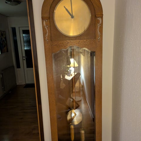 Meget velholdt, og den virker perfekt. Loddrevet Standeur. Kleninger. Tempus Fugit. istandsat i 2022 (kvittering medfølger på dette, 4.000,-) Den har ingen skader eller ridser, mærker, fremstår smuk og intakt. 195 cm høj, 35/49 cm bred. Kan afhentes i Sdr. Vilstrup (6100 Haderslev)