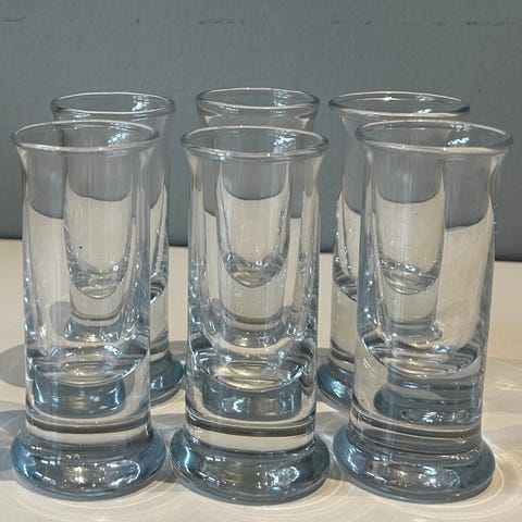 1 stk helt ny gaveæske med 6 stk forskelligefarvet snapseglas fra Lyngby glas