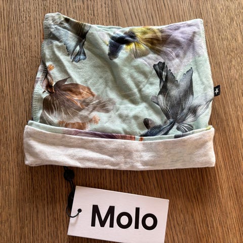 Ny skøn bomuldshue med kaniner fra Molo - stadig med mærke. Str 6-12 mdr