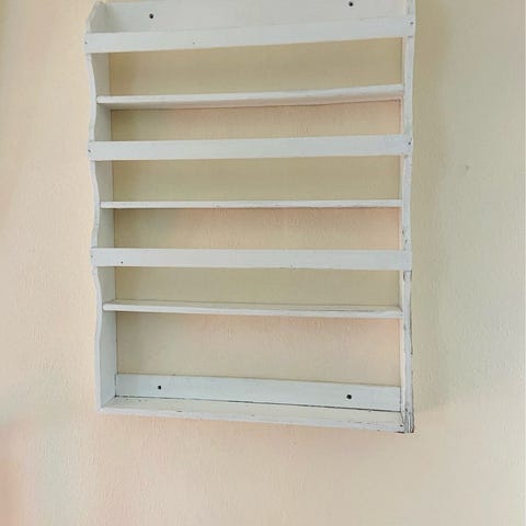 Træ hylde i hvid maling med en længde på 70 cm. Hylden har en enkel og funktionel udformning med plads til opbevaring eller dekoration. Egnet til vægmontering i hjemmet.