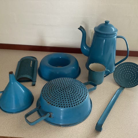 Fine gamle bageforme og et rivejern i jern. Giv gerne bud.