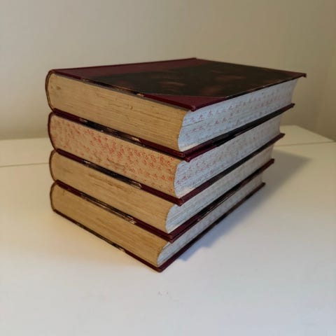 Oprindelig udgivet i 6 dele, her samlet i tre bind. Fin indbinding med læderryg og guldtryk.