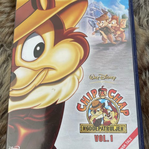 Disney Chip og Chap Røddetpatruljen DVD Vol. 1 indeholder flere episoder med Chip og Chap. DVD'en er på dansk og indeholder afsnit som 'Den store skattejagt', 'Tømreren', 'De forsvundne æg', 'Den mystiske mus' og 'Kaptajn T. Klo'.