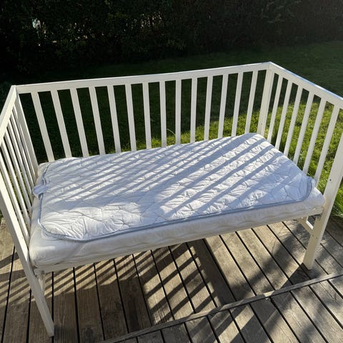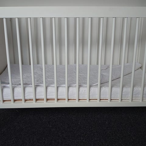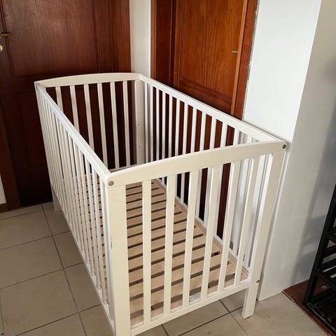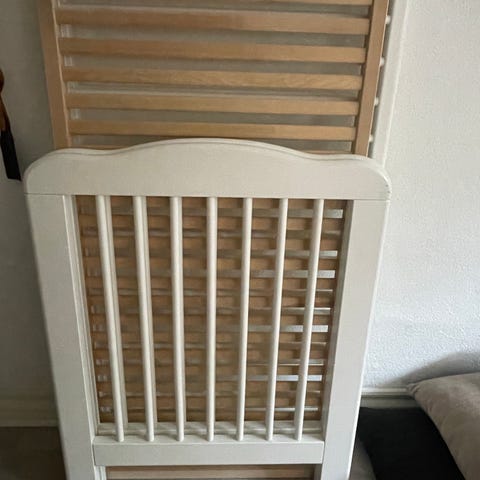 * Tremmeseng: Længde 126 cm; Bredde 69 cm; Højde 92 cm
