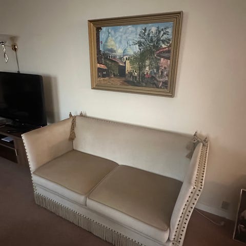 Selling my “peach pink” sofa – Excellent condition (only one small snag at the back of the sofa).