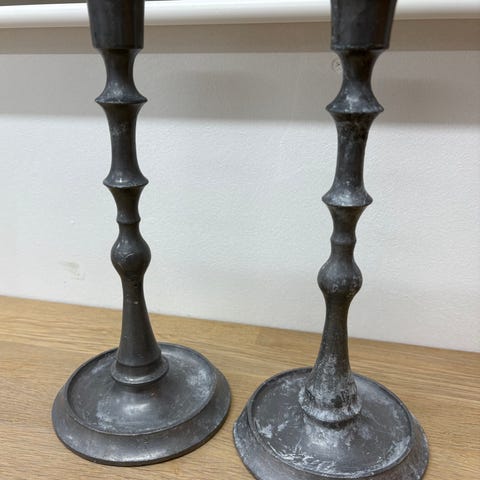 Tin lysestager i meget fin stand. Juletræslys passer til stagerne.
