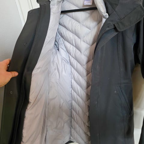 Patagonia Frakke i størrelse XL til kvinder. Jakken er sort og har en kombination af ydre materiale og en indvendig foret polstret sektion for ekstra varme. Den har hætte med justerbar snor og lynlåslukning. Jakken er designet til at give beskyttelse mod vind og kulde. Jakken kan deles og bruges kun som dunjakke eller kun som hard-shell/regnfrakke. Fra sidste år. Nypris er 4160