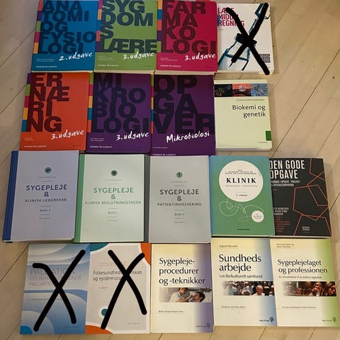 Sygepleje studiebøger, Peter elsass, år 2001, Medicinske sygdomme, ernæring og diætetik, neurologi og neurokirurgi, sygeplejeteorier, klinisk ordbog, sundhedspædagogik for praktikere, basal sygdomslære, børn og unge sundheds og sygepleje, biokemi, sundhedspsykologi, medicinsk sociologi, psykiatri - en grundbog, almen sygepleje, menneskets anatomi og fysiologi, embryologi, genetik og medfødte misdannelser