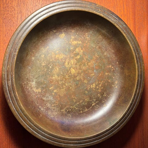 Flot fad - kunstfad til placering på bord eller . Abstrakt motiv i flotte farver,. Glans blank lackeret træ overflade på begge sidder ø 45 cm