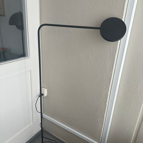 HAY Rope Trick standerlampe med integreret LED og lysdæmper. Designet af Stefan Diez for danske HAY. Minimalistisk lampe med mulighed for højdejustering og retning justering af lampeskærm. Meget lidt brugt , da den stået i gæsteværelse. video hvordan justeres lampeskærm her:
