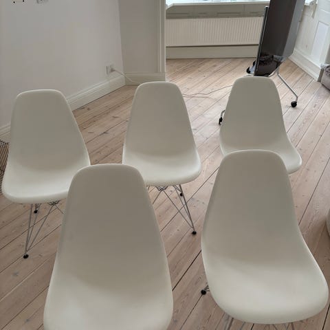 Superflot og 100% fejlfri ægte stol designet af Ray og Charles Eames I 1950 og fremstillet af Vitra. Købt for få år siden i Paustian. Stolen er brugt meget lidt og fremstår som aldeles ny. Nypris 5600 kr. Siddehøjden er 45 cm.