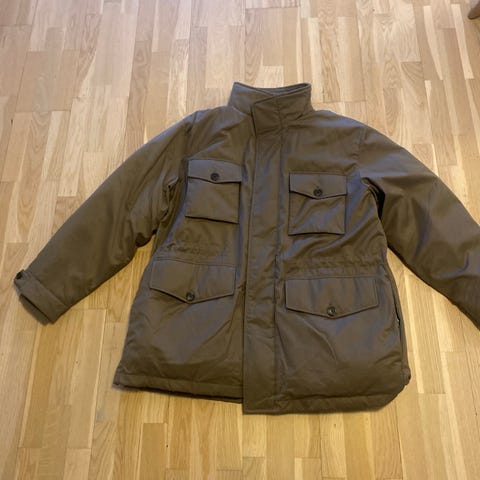 NYVASKET Mellemlang varm, lækker overflade behandlet Parka dynejakke. Bryst: 119, talje: 106-118, hofte:118. Fremstår af god kvalitet. Ved lomme bagtil en nærmest usynlig reperation. Se billede. Nyprisen er ca. 3000, men en reperation trækker prisen ned. Der er mange lækre finesser og lommer med lynlåse indvendigt udvendigt. God pasform. Ikke ryger hjem. Vaskes skånevask 30°. Tørretumbler med bolde et timer lav temperatur.