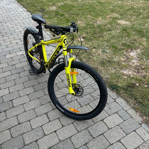 Scott Aspect 670 – Alloy 6061, hardtail. En rigtig god 26″ drenge MTB – både til skole og ture på MTB-tracks i skoven. Passer cirka til 10-13 år. Mekaniske Shimano skivebremser, 21 Shimano Altus gear, vægt 13,8 kg. Påmonteret støttefod, bagskærm og Abus lås. Der er et par småhuller i sadlen. Har stået ubrugt i et års tid, så trænger til en god gang smøring. Men er ikke ”rustet fast, så man kan sagtens tage en lille prøvetur inden købet.