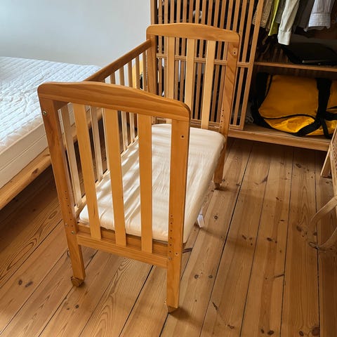 JLY ELLA Dream Lux tremmeseng + madras. 1000kr. Fast pris. Madras fejler ingenting og har været beskyttet med lagen. Bemærk at der er noget maling som er faldet af, se billedet.