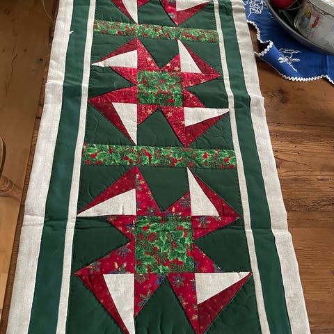 BRODERET JULELØBER MED FINE MOTIVER MED JUL,MEGET FINT BRODERET ! LØBER MÅLER 94×32 CM PRIS 80 KR !!