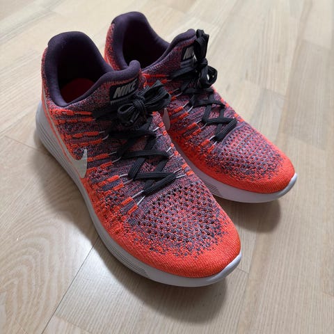 Nike løbesko i størrelse 38 med sort og pink farvetema. Skoene er designet til løb og har en kombination af materialer, der sikrer komfort og støtte under træning.