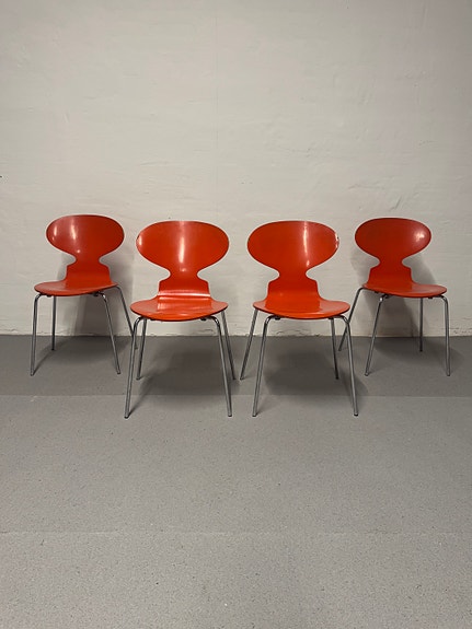 Stolen er designet af Arne Jacobsen, fremstillet samt mærket hos Fritz Hansen.