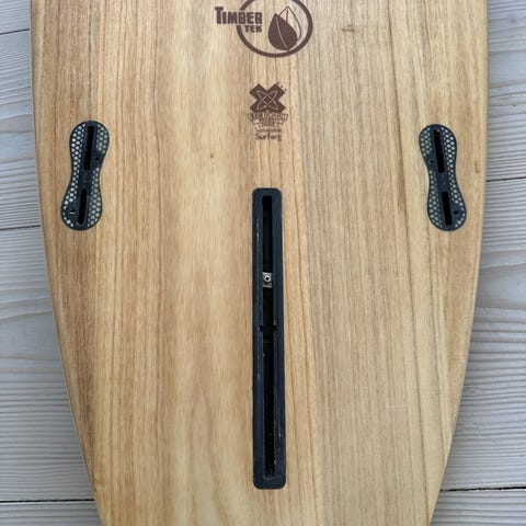 Surfboard rack made of wood designed to hold multiple surfboards vertically. Suitable for organizing and storing surfboards in indoor spaces. The rack features a simple wooden frame structure for stable support of boards of various sizes.