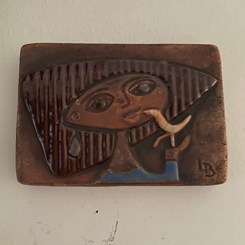 Flot fisk i keramik fra Lars Bergsted. Den har skår på halen, men det er uvist, hvorvidt den er lavet sådan.