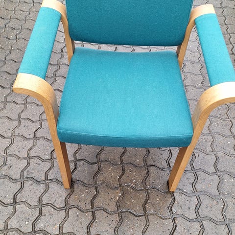 MAGNUS OLESEN, MODEL 6111, MED MASSIV TRÆSTEL OG POLSTRET SÆDE, ARMLÆN OG RYG.