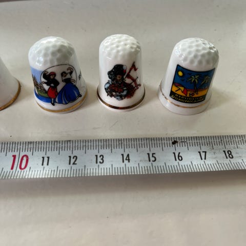 4 stk fingerbøl i træ med motiver på