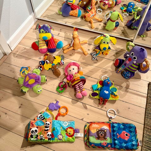 6 stk Lamaza babylegetøj. 375 kr
