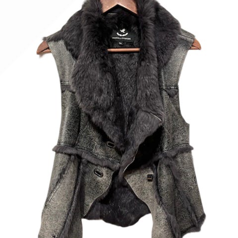 Fed kort vest fra munde og Simonsen stribet med broderier og sten